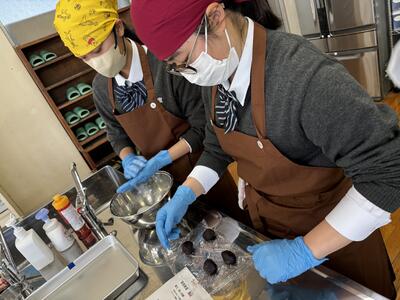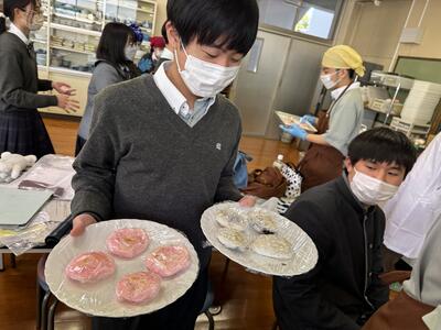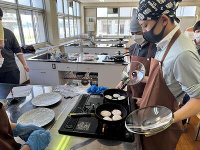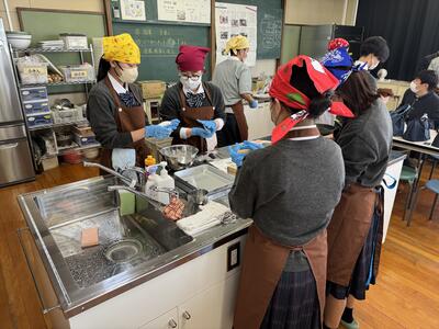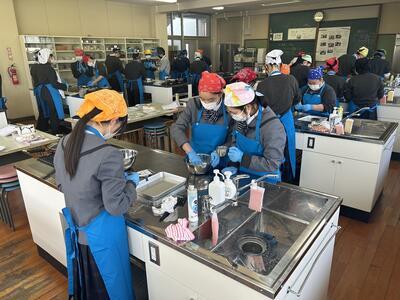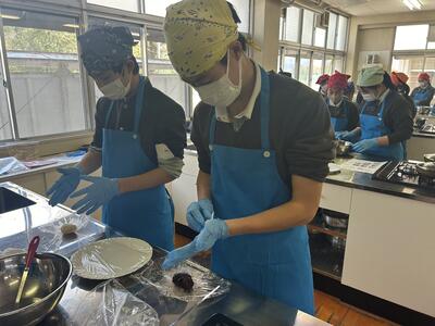 1年1組と2年4組が調理実習で「梅ヶ枝餅」を作りました家庭科・調理 調理途中では、白玉粉に水を入れすぎてドロドロになったり急ぎ、あんこが手にくっ付いたり急ぎとハプニングもあり、とても楽しく実習を行なっていましたピース出来上がりは、いろいろな姿になっていたようですが・・・とても美味しくできあがっていたようです花丸お土産に持って帰る生徒もいたようですよハート