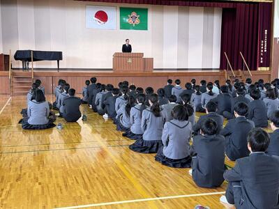終業式では校長先生から、この1年間のこれまでの振り返りと次への準備、春休み中に心と体を整えてほしいというお話がありました会議・研修