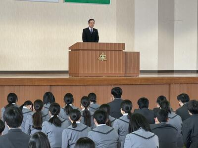2月28日、「同窓会入会式」が行われましたお祝い 式では、同窓会長の松本様から松橋高校の歴史や卒業生へのお祝いの言葉が語られました。また、新入会員代表の挨拶では代表生徒が感謝の気持ちを込めてお礼の言葉を述べました。さらに、卒業記念品として卒業証書ホルダーが贈呈され、同窓会表彰では4人の生徒がその努力と成果を認められ表彰されました星