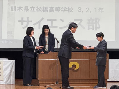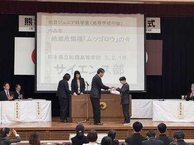 熊本県庁で行われた「令和7年度(2025年度)熊本県科学研究物展示会(第85回科学展)」の表彰式に、サイエンス部の代表生徒が参加してきました今年度は松高近隣に生息しているムツゴロウについて研究に取り組み、「熊日ジュニア科学賞」を受賞することができました