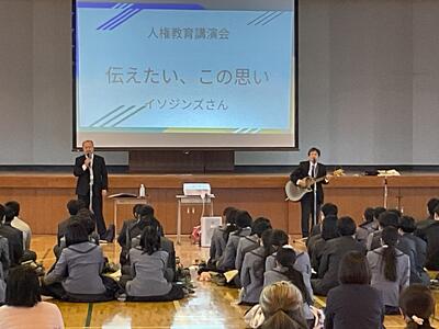 また、人権バンド「イソジン ズ」の皆さまをお迎えして人権講演会も行われました音楽とトークを通して、人権や思いやりの大切さについて学ぶ有意義な時間となりました