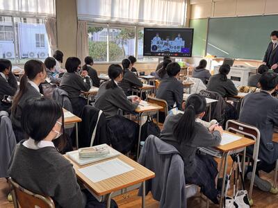 1年生と保護者を対象に、キャリアサポーターの坂口先生による進路学習会を行い、生徒たちは将来について考える貴重な時間となりました 続いて修学旅行説明会では、旅行会社から、旅行の日程