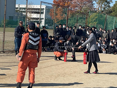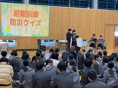 その後、普通科の生徒が「宇城防災」の授業で学んだことをもとに、体育館で「防災学習クイズ」を行い、全員で防災について理解を深めました。消防署の皆様、ありがとうございました