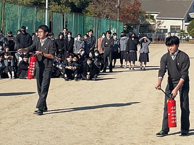 生徒たちは消火器の使い方を体験し、防災意識を高めることができました