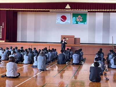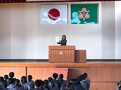 1月8日、表彰式の後に始業式を行い、その後、進路指導部からお話がありました生徒たちは新学期のスタートにあたり、気持ちを新たに学校生活や将来について考える機会となりました