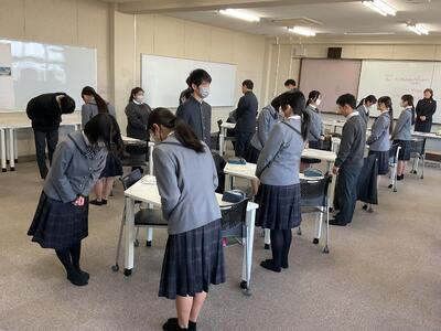 3年生の登校も、あと4日となりましたそのひとつの1月26日、公益財団法人 熊本県雇用環境整備協会から講師の先生をお迎えし、「社会人セミナー」を実施しました。セミナーでは、社会人として求められる心構えや、働く上で大切にすべきマナーや挨拶の大切さなどについて分かりやすくご講話いただきました