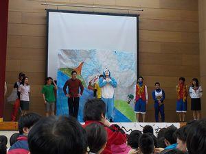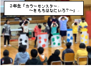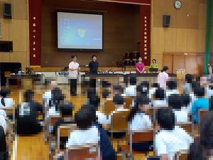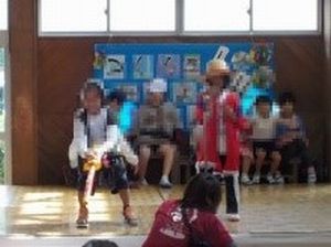 午後は、全校児童生徒が体育館集まり、トヨタの方々による劇が行われました。キャラクターになりきるトヨタの方々に子どもたちの視線もくぎづけ!