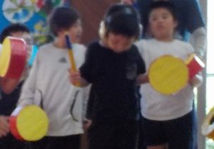 10月27日(月)に「かあちゃんず」の皆さまによるコンサートが行われました。「世界中の子どもたちが」や「ドレミのうた」などを演奏していただきました。子どもたちもマスカラや太鼓を一緒に演奏したり、歌ったりすることができ、とても楽しい時間になりました。「かあちゃんず」の皆さま、ありがとうございました。