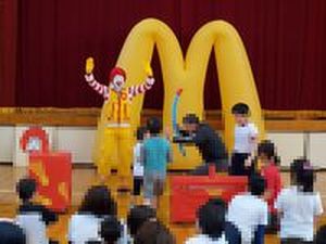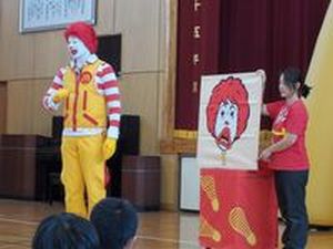 11月14日(金)にドナルドショーが行われました。ドナルドさんの楽しいトークやバルーンアートに大喜びの子どもたちでした。また、ドナルドさんとひとりずつハイタッチをしたり一緒にマクドナルドのダンスを踊ったりして楽しい時間を過ごしました。