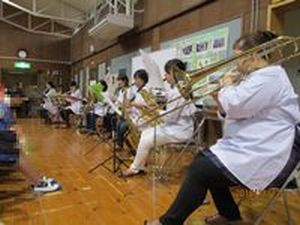 また、12日(月)には、「かあちゃんず」の皆様をお招きし、演奏会が行われました。フルートやクラリネット、サックス、トロンボーン、ドラムで、子どもたちに馴染みのある曲をたくさん演奏していただきました。子どもたちは、楽器の演奏に合わせて歌ったり、楽器を鳴らしたり、ダンスを踊ったりしました。とても素敵な演奏で、笑顔あふれる時間となりました。