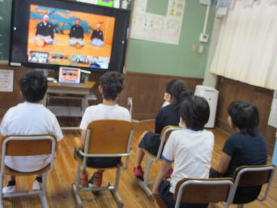 今年度は全学年で集まることができないため、各学年ごとに6年生とお祝い会をし、その他の学年は別の場所からZOOMを使って、お祝いに参加しました。