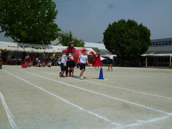 徒競走「ゴールめざしてよーいどん!」では、30m、40m、60m、80mそれぞれのコースを、最後までゴールを目指して走ったり、全力で走ったりしました。一人一人のがんばる姿が輝いていました。
