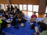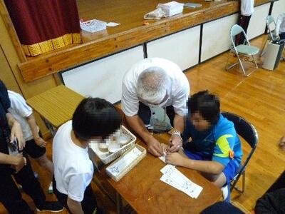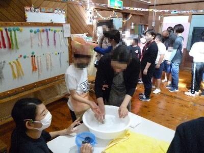 初日の創作活動では、石を一生懸命削って「まがだま」を作りました。子どもたちは一人一人違うまがだまアクセサリーを作り、思い出に残る記念品ができました。夜はキャンドルの集いを行い、静かに揺れる炎を見ながら、1日を振り返りました。また、食事や入浴のルールもしっかり守り、布団やシーツを友達と協力して出したり、たたんだりすることができました。