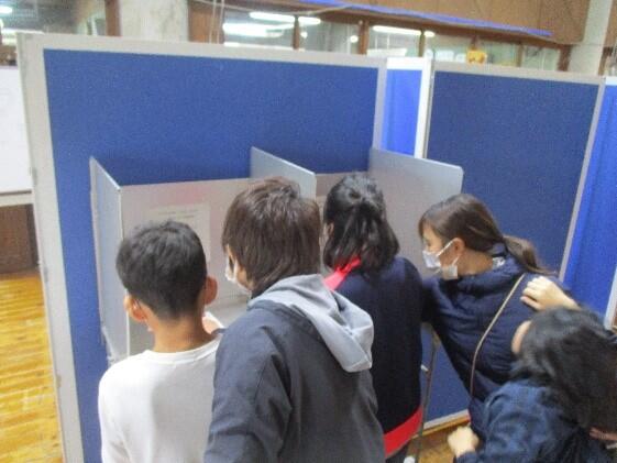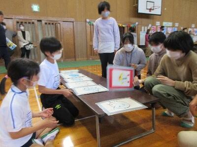 子どもたち一人一人が精一杯活動してきた成果を、各学年少人数ずつで見学してまわりました。いろいろなアイディアを凝らした作品に、子どもたちの表情はいきいきと輝いていました。