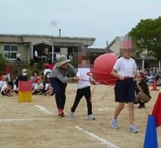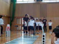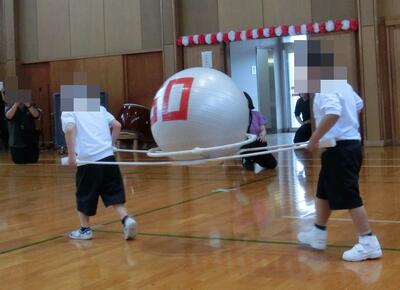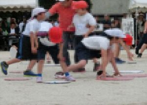 学部団体競技「ころころ!ぱた!ぽん!」では、赤団、白団に分かれ、パタポンに向かってボールを転がし、倒した旗の数を競いました。結果は、赤団が優勝でしたが、これまでの一生懸命練習してきたがんばりを認め合うことができたのではないかと思います。
