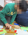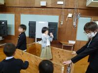 3年生は、書き初めや神社作り、初詣ごっこ、ししまい、こま、風船羽根つき、だるまおとしなど、いろいろな活動を行いました。さまざまな材料を用い、自分たちで作ったり、絵を描いたり、飾りつけをしたりし、友だちと一緒にお正月ならではの遊びを楽しみました。