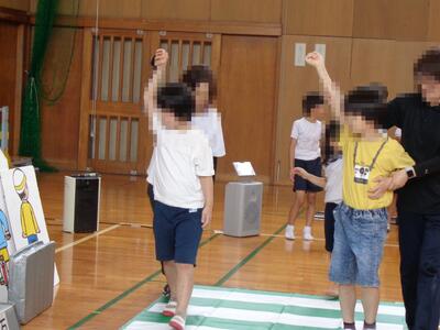 子どもたちは、普段あまりしない動きを楽しみながら、いろいろな動きに挑戦することができました。
