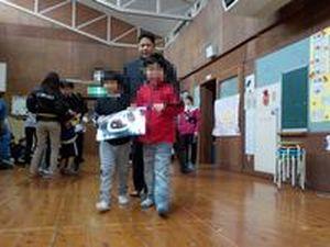 次に、1、2、3、4、5年、それぞれの学年で作ったプレゼントを贈りました。6年生の嬉しそうな顔に、6年生のためにがんばって作った在校生も嬉しそうでした。