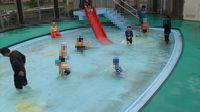 1年生にとっては、学校生活初めてのプールでの活動で、水をかけたり、顔をつけたり、滑り台を滑ったり、楽しみながら水に慣れました。