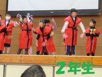 1年生は「“ガンバプリカ”をそだてよう」。みんなの力を合わせてパズルやダンスを踊りました。2年生は「みんなでおどろう ソーラン節」。一生懸命元気よく踊って会場を盛り上げました。3・4年生は、リズムや歌、合奏を行いました。とてものびのびと発表することができました。5年生は「ディズニー オン 体育」。ディズニーの音楽に合わせて、ダンスやマット運動など体いっぱいで表現しました。6年生は、「書道パフォーマンス みんなへのありがとう」。これまでの6年間の感謝の気持ちを書道や保護者さんに向けた手紙で伝えました。