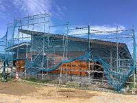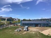 心配していた台風の影響もなく、順調に工事が進んでいます。骨組みだけだった作業棟の壁面には、木目調の外壁ができ、随分完成形に近づいてきました。