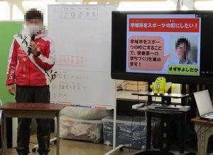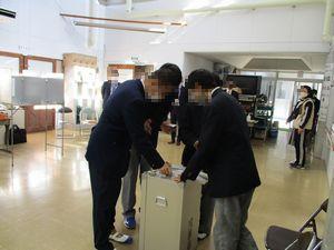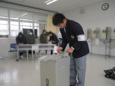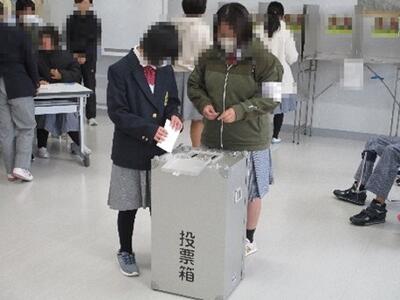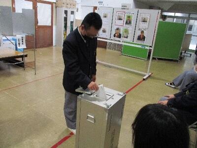 12月4日(金)主権者教育の一環として熊本県・宇城市選挙管理委員会の方による出前授業をしていただきました。まず選挙管理委員会の方からクイズ形式で投票の方法等の講話がありました。その後は、模擬宇城市長選挙として職員2人が立候補して演説をし、スローガンや公約を熱く語りました。講話や演説を聞いた生徒たちは積極的に質問をし、どちらに投票するのか、しっかり考え投票しました。また、代理投票も取り入れ投票を行いました。最後に開票があり、1票差で模擬宇城市長が決まりました。大いに盛り上がった出前授業となりました。