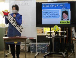 5月31日(月)に全校集会がありました。いじめについて各クラスでテレビ画面に教材を表示しながら、生徒会のみんなが校内放送で説明をしながら「3ない」運動について学びました。