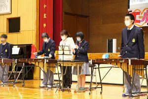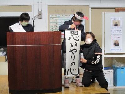 2月28日(月)に「3年生を送る会」が行われました。これまでお世話になった3年生への感謝の気持ちを伝えようと、1年生は「小さな世界」の合奏、2年生は書道パフォーマンスを披露しました。1、2年生は一人一人が役割を果たしながら力を合わせて、最高の発表を行うことができました。また、発表を通して感謝の気持ちが伝わり、3年生がとても喜んでくれたことで、達成感や充実感を1、2年生のみんなで感じることもできました。