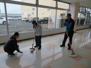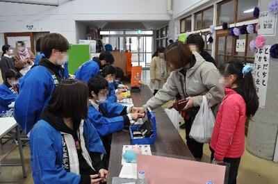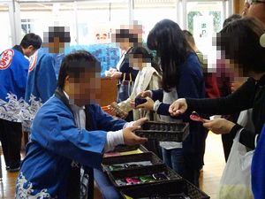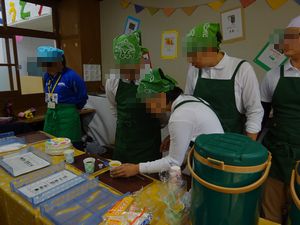 販売実習会当日は、生徒一人一人がチラシ配りや袋詰め、会計等の役割を一生懸命に取り組み、みんなで協力しながらたくさんの作業製品を販売することができました。また、サービス班は校内清掃で取り組んできたことを生かしながら、店内の清掃活動を行い、窓や床をとてもきれいにすることができました。