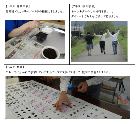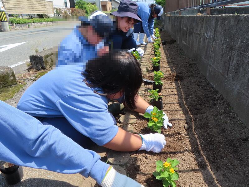 6月7日から18日の2週間、高等部2・3年生は前期現場実習、高等部1年生は校内実習を行いました。1年生はJAくまもと宇城跡地の花壇に作業学習で農業班が栽培したマリーゴールドや百日草を植えました。作業後は大変疲れた様子でしたが、花壇がきれいになって満足そうでした。