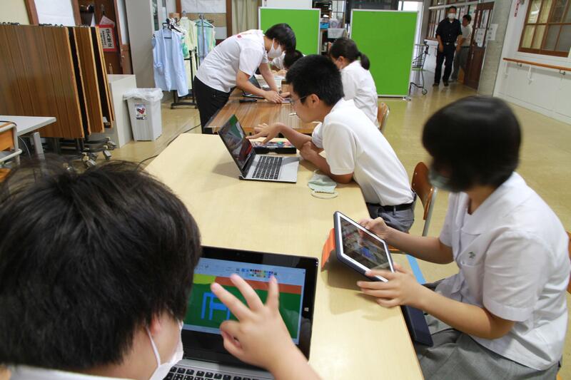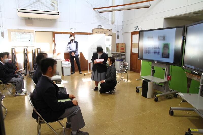 また、現場実習で、2年生がお世話になっている事業所とオンラインで繋いで働く様子を見たり、質問をしたりしました。