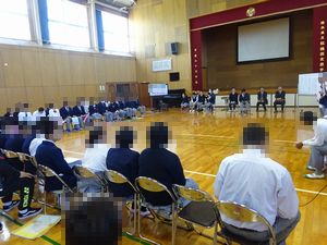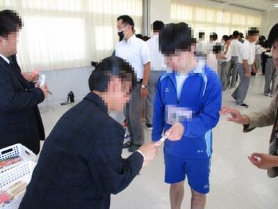 12月10日には、宇城警察署の方にお越しいただき、「闇バイト」から自分の身を守ることついての講話をいただきました。日頃から身近に利用しているメールやSNS等を通して、仕事の依頼が手元に届く仕組み、被害者の弱みを握った巧妙な手口で闇バイトに誘い込む方法について知り、実際の事案を取り上げて、被害者・加害者双方の心理を確認しながら、闇バイトの危険性について学ぶことができました。