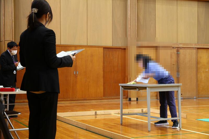 本校高等部からは12名がテーブル拭きや自在ぼうき等の種目に参加し、緊張感漂う雰囲気の中で真剣な表情で取り組み、これまでの練習の成果を発揮しました。