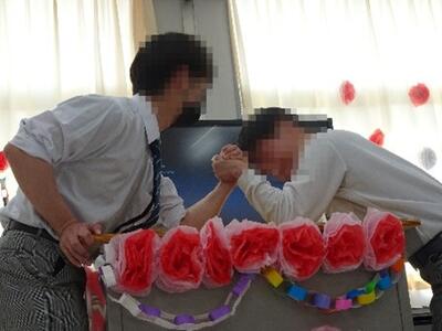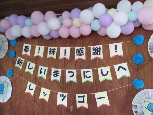 3月は旅立ちの月です。卒業を控えた3年生のために、高等部では2月28日(木)に「卒業生を送る会」を行いました。卒業生の尊敬しているところを話し合い、ドキュメンタリー形式で撮影した映像を上映したり、1・2年生合同で歌を送ったりするなど、今までの感謝の気持ちを伝えました。「卒業おめでとうございます」の長さ8mの横断幕や、花飾りやガーランドで彩られた体育館で、3年生も見事なチームワークでの太鼓演奏を披露し、1・2年生にバトンをつなげることができました。