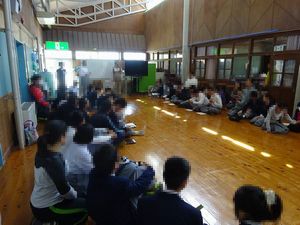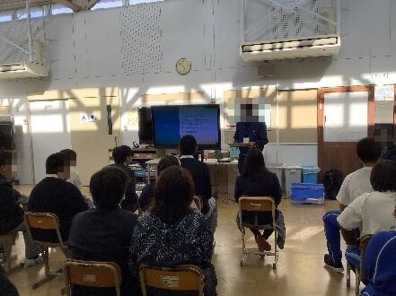 12月13日には、トヨタさんとのふれあい交流会が開かれました。ディーラーや整備士などの仕事について、仕事の様子が分かる写真を用いながら説明していただき、働くことに対してのやりがいや大変さから得た経験や学びについて教えていただくことができました。また、学年ごとにレクリエーションを通して楽しく盛り上がりました。