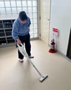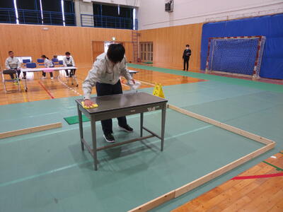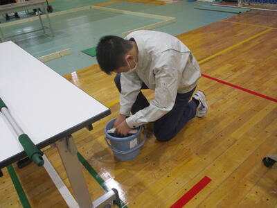 12月16日(木)に本校体育館にて清掃技能検定が行われました。この検定は清掃の技能について専門的な視点から評価を受けることにより、将来の職業自立につながる知識、技能及び態度を身につけるとともに、就労に向けた意欲の向上を図る目的で行われます。受検を希望した生徒が、テーブル拭き、自在ぼうき、水拭きモップ、ダスタークロスの清掃種目の中から1つを選び受検しました。普段の体育館とは違い、緊張した空気が張り詰めている中で、生徒は練習の成果を発揮していました。リモートで応援する生徒は高等部ホールから拍手を送っていました。