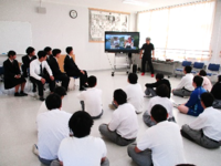 10月22日(金)のトライ学習では「先輩に学ぶ」の講演会がありました。講師は、昨年度本校を卒業された先輩です。介護老人デイサービスに就職され、社会人としての一日の生活スタイルや職場での様子などをビデオを使って詳しく紹介していただきました。今年度は、リモートによる講演会で直接お会いすることはできなかったですが、生徒はとても興味深く耳を傾けていました。