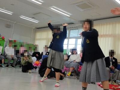24日は、ステージ発表で有志による「ソーラン節」を披露しました。体育の時間や昼休みを使って練習を重ね、当日は松橋高校の生徒や保護者の皆様が見守る中、堂々と発表することができました。また、2年生の有志は、松橋高校2年1組の生徒とダンスを発表しました。一緒に練習をするなど、松橋高校の同級生と直接交流できる機会となりました。