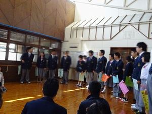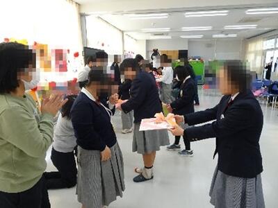 3月1日(金)に「卒業生を送る会」が行われました。1年生はトーンチャイムの演奏と歌、2年生は3年生とのダンスやクイズ対決など、3年生のために一生懸命に考えてくれた素敵な出し物を披露してくれました。3年生は後輩たちの素敵な出し物に嬉しさや寂しさなどで涙を見せる生徒もおり、とても良い思い出になったようでした。