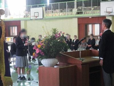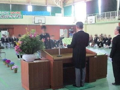 校長式辞 松橋高等学校の校長先生(平江良樹校長)も来賓として御出席していただきました