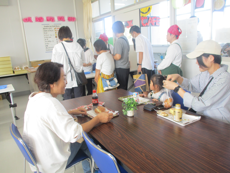 25日は販売会を実施しました。クラフト班は革製品や紙すき製品等、農業班は花苗やサツマイモ等の製品を販売しました。サービス班は「Mottoカフェ」を開き、学んだことを生かして接客することができました。