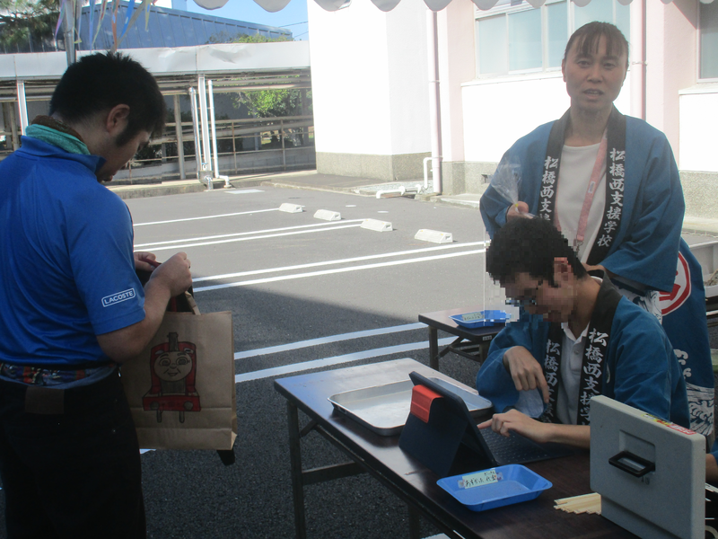 10月14日(日)に、「まつにしデー」が盛大に開催されました。高等部は作業製品の販売やカフェを行ないました。当日はお客様が列を作るほど大盛況でした。「いらっしゃいませ。」「いかがでしょうか。」「ありがとうございました。」という声も響き渡り、お客様に笑顔で製品を手渡したり、袋にサンキューカードを入れたり、それぞれが自分の仕事に責任持って取り組むことができました。次は3学期の販売会に向けて頑張っていきます。