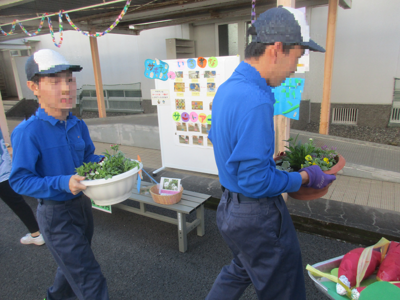 2月は後期販売会が行われました。久しぶりの人数制限のない販売会になりました。「どれぐらいの人が来るのかな」「買ってくれるかな」「接客はうまくできるかな」など、期待と不安の中で販売会が始まりました。農業班は花苗や切り干し大根などの販売、クラフト班は革製品やポチ袋などの販売、サービス班は接客(カフェ)や案内をしました。販売会にはとても多くのお客様が来てくださり、10時から12時までの販売予定でしたが、11時ごろにはほぼ完売するような大盛況になりました。販売会終了後は「いっぱい買ってくれた」「(カフェで)ジュースを出したらありがとうと言ってくれた」などの感想が聞かれ達成感・充実感を味わうことができていました。御来校していただいた方、製品並びに食品等でご協力いただいた方、深く感謝申し上げます。