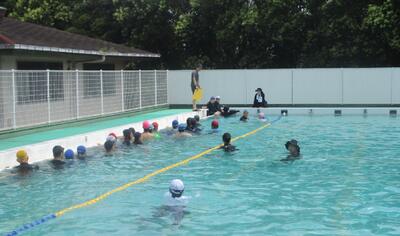 6月・7月は、松橋高校の広いプールで水泳を行いました。