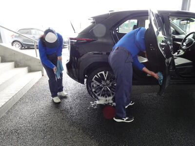 進路決定に向けて3週間の現場実習・校内実習が行われました。校内実習では、洗車や清掃、委託作業として風船の封入作業に取り組みました。また、小中学部校舎の清掃にも取り組みました。