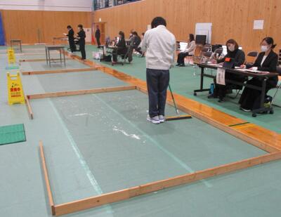 12月19日(火)に熊本県教育委員会が主催する熊本県特別支援学校技能検定(清掃)が行われました。今年は松橋高校第二体育館で実施しました。家での手伝いや学校の掃除とは違い、専門的な視点で清掃技能の評価を受け、認定を受けた級は履歴書にも記載することができます。テーブル拭き、自在ぼうき、水拭きモップ、ダスタークロスの中から一人一種目挑戦しました。今回は保護者の方以外にも、松橋高校の校長先生をはじめ職員の方々、実習などでお世話になった事業所の方々も参観に駆けつけてくださり、緊張感もありながらも見ていただけている充実感も味わうことができました。