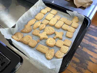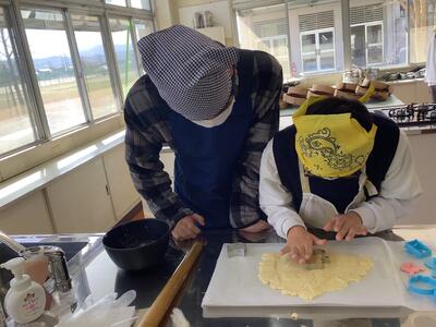 松橋高校の調理室を使用して、クッキーづくりをしました。グループで役割分担をしながら手順通りに進めることができました。