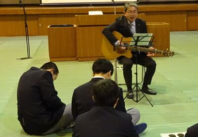 6日に修了式を行いました。式後には、校長先生が弾き語りで歌のプレゼントをしてくれました。