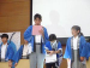 4月12日(金)に高等部の対面式を行いました。1年生は自己紹介を、上級生となる2、3年生はクラス紹介や出し物を行いました。出し物では、3年生が、学校にまだ慣れていない新入生や先輩を演じ、体調が悪いときやわからないことがあったときにはどうしたらよいかを劇を通して紹介しました。和やかな雰囲気に包まれ、これまで緊張していた新入生にも和やかな笑顔が見られました。これから1年間、お互いに協力しながらいろいろな活動に取り組んでいきたいと思います。