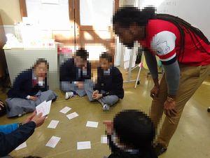 1月17日、ALTのクイーン先生との授業が行われました。3年生は2回目、1・2年生は初めてのクイーン先生との授業でした。1・2年生は初めてということでクイーン先生に自己紹介をしていただきました。クイーン先生はサッカーが得意ということで、リフティングを披露してもらい、上手なボールさばきを見て、生徒たちから大きな歓声が上がりました。その後は「曜日」を英語で表記した「かるた」に取り組みました。各グループにクイーン先生にも入っていただきながら、楽しい時間を過ごすことができました。